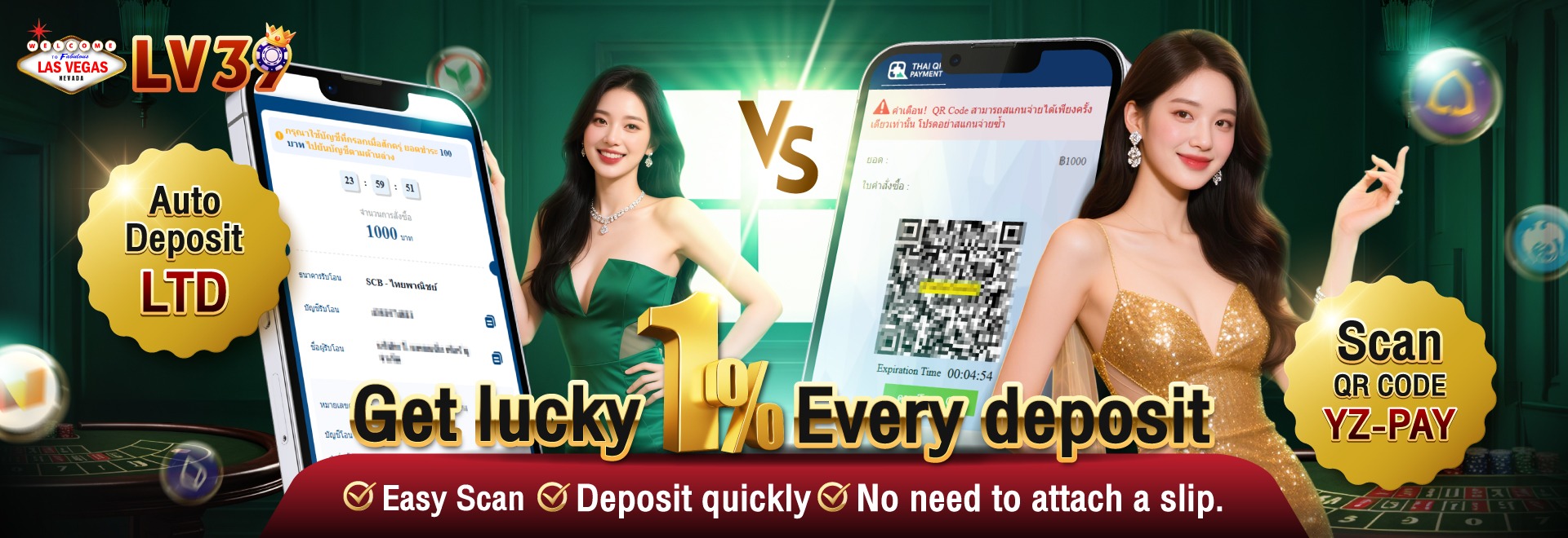 LV39 มี ระบบฝาก-ถอนอัตโนมัติ 24 ชั่วโมง ที่รวดเร็วและปลอดภัย รองรับ True Wallet และการทำรายการ ไม่มีขั้นต่ำ ทำให้คุณสามารถจัดการเงินทุนและรับโปรโมชั่นสุดคุ้มได้อย่างต่อเนื่อง.